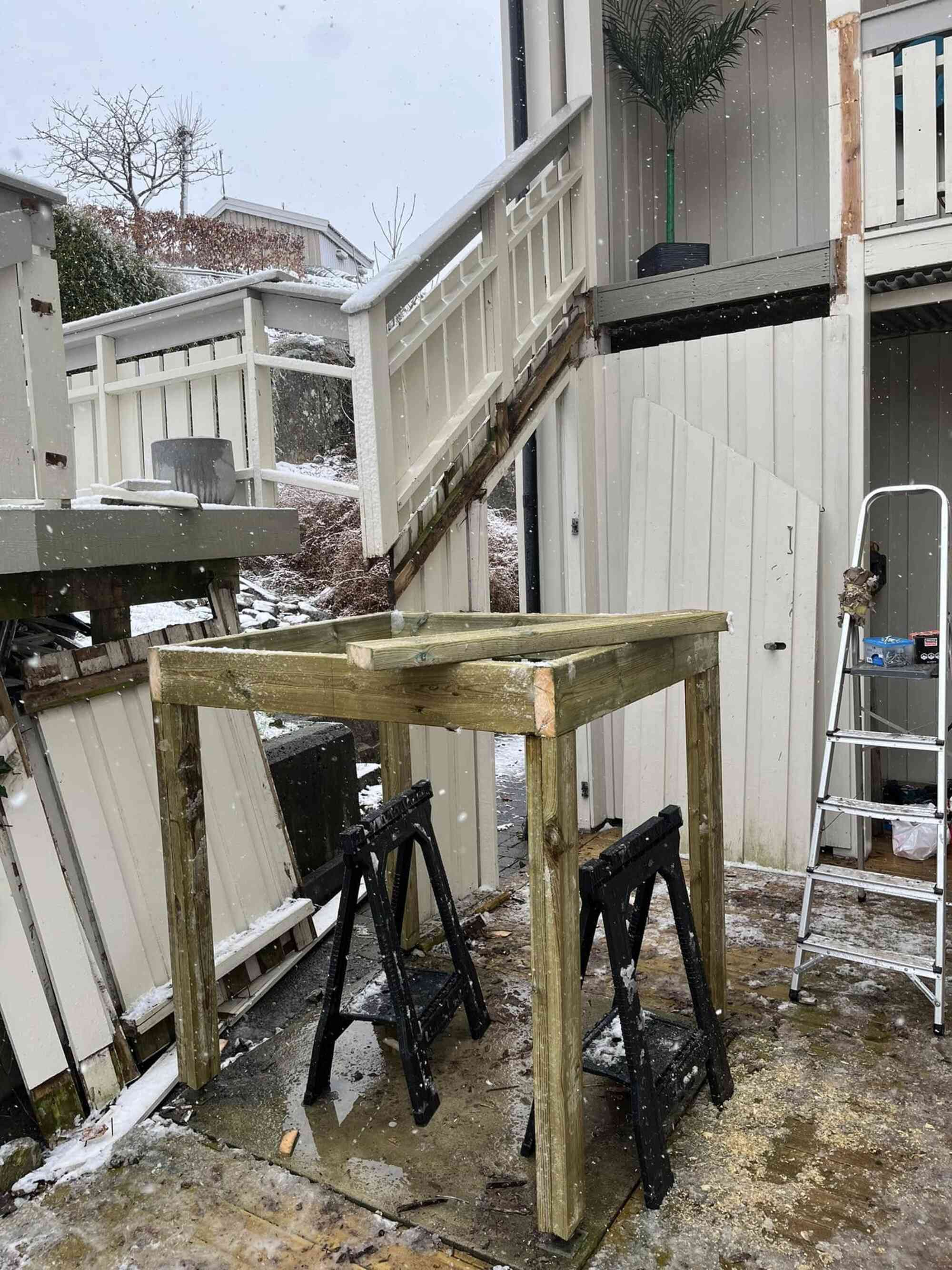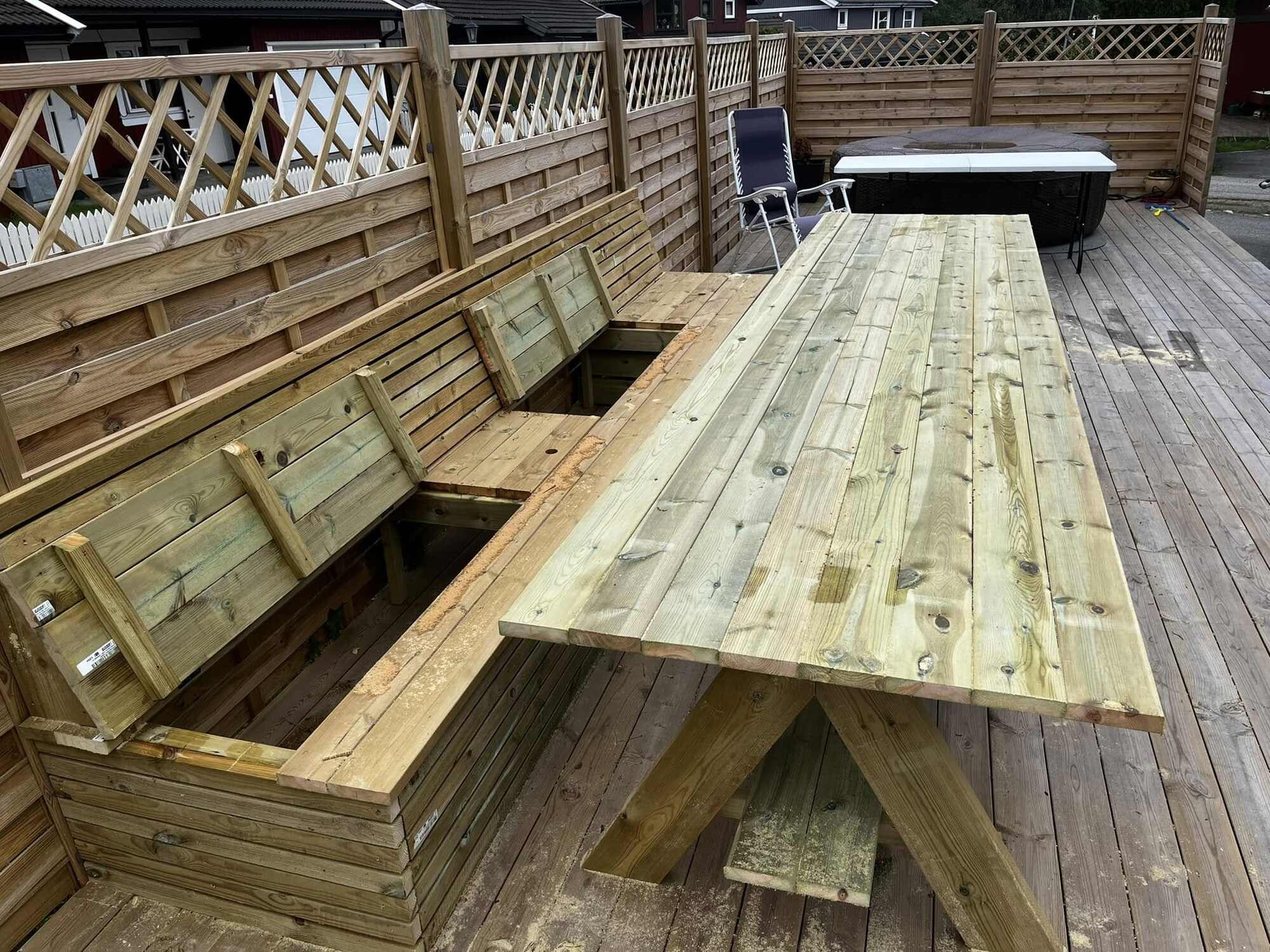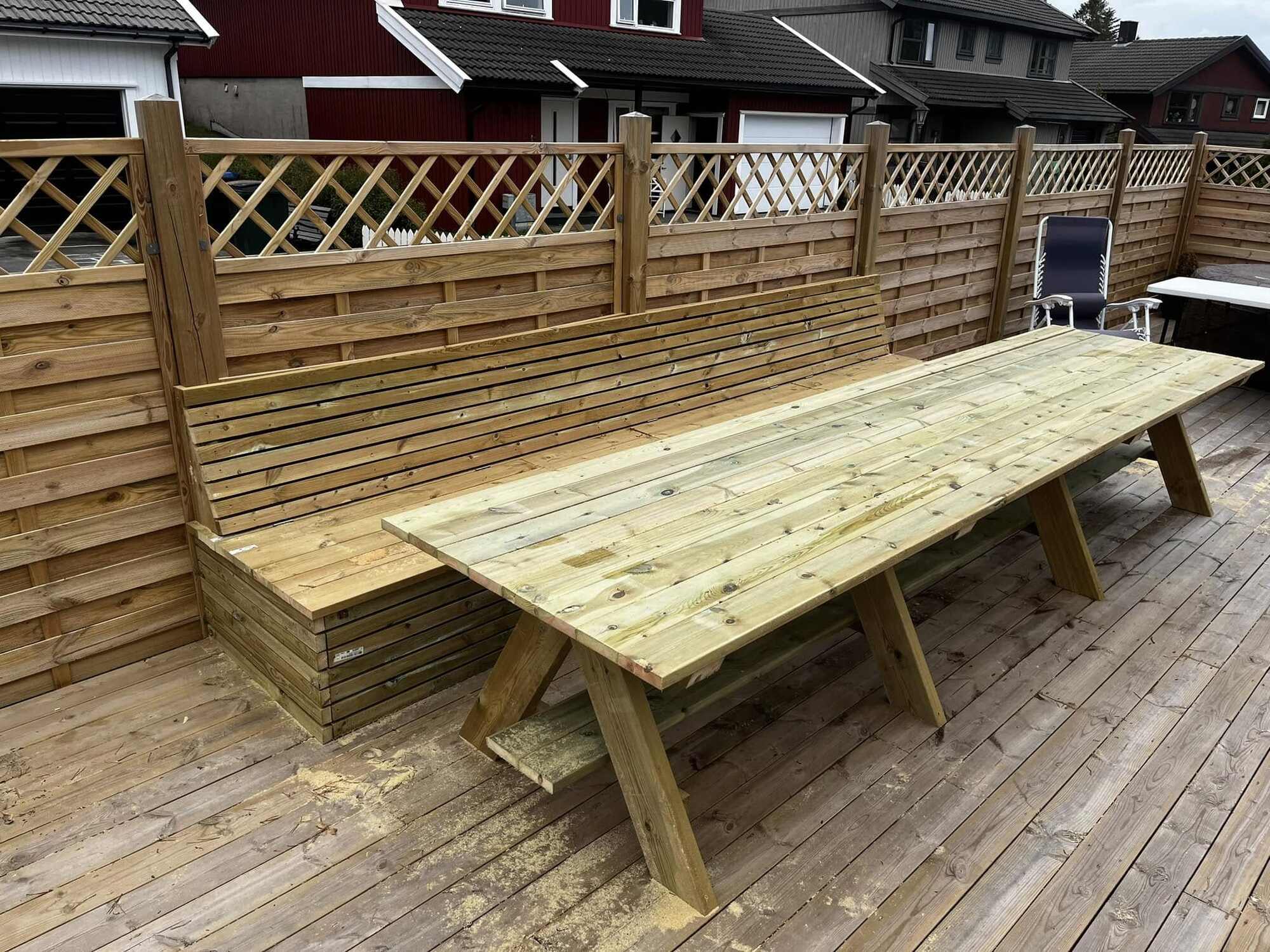 Her har vi laget ny benk og tilhørende bord. Benken har også oppvarming.